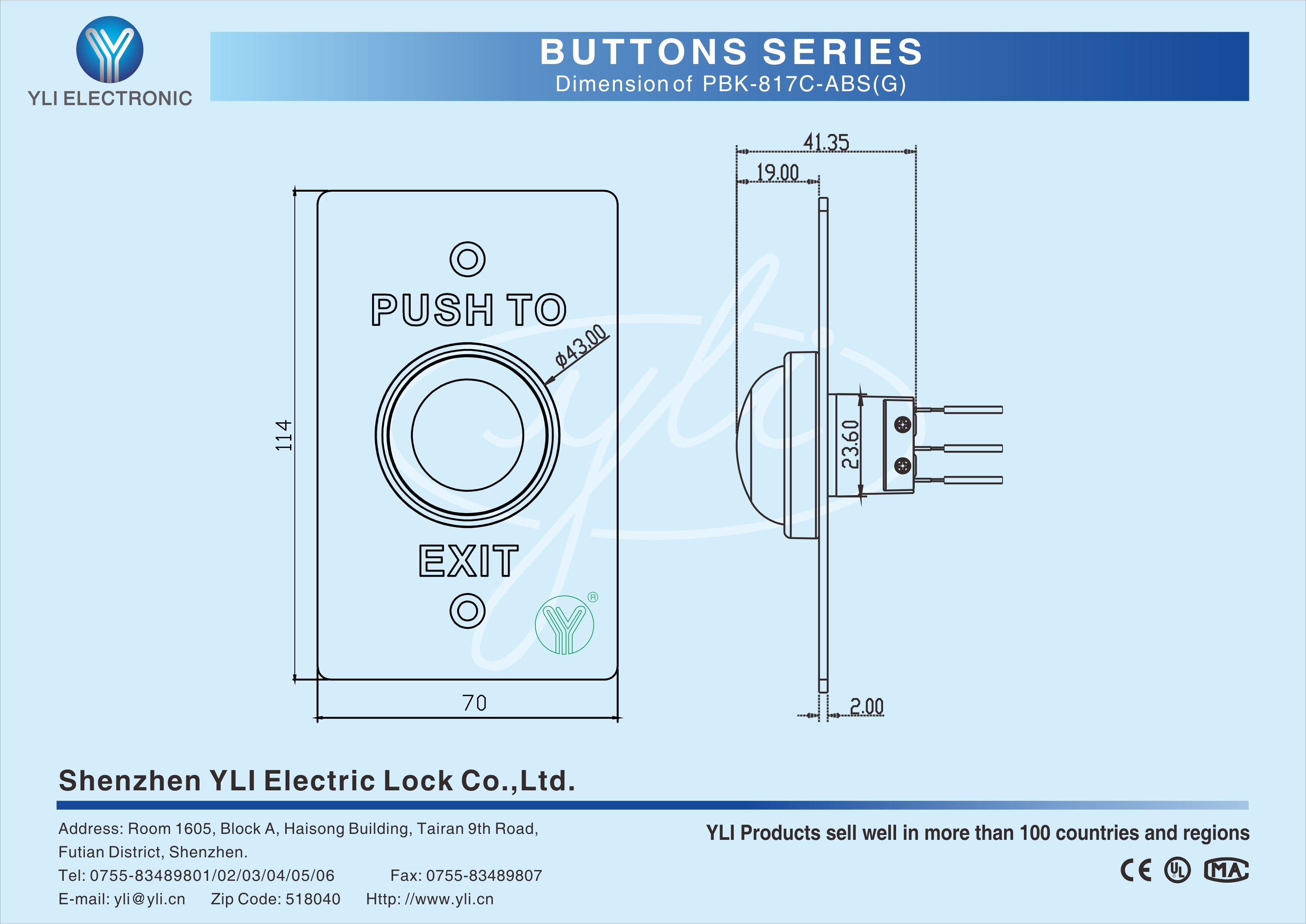 PBK-817C-ABS(G) Door Release Button is ABS material button ,304 stainless steel panel. They are often used in public authorities, banks, large、small and medium-sized enterprises, department stores and residences.