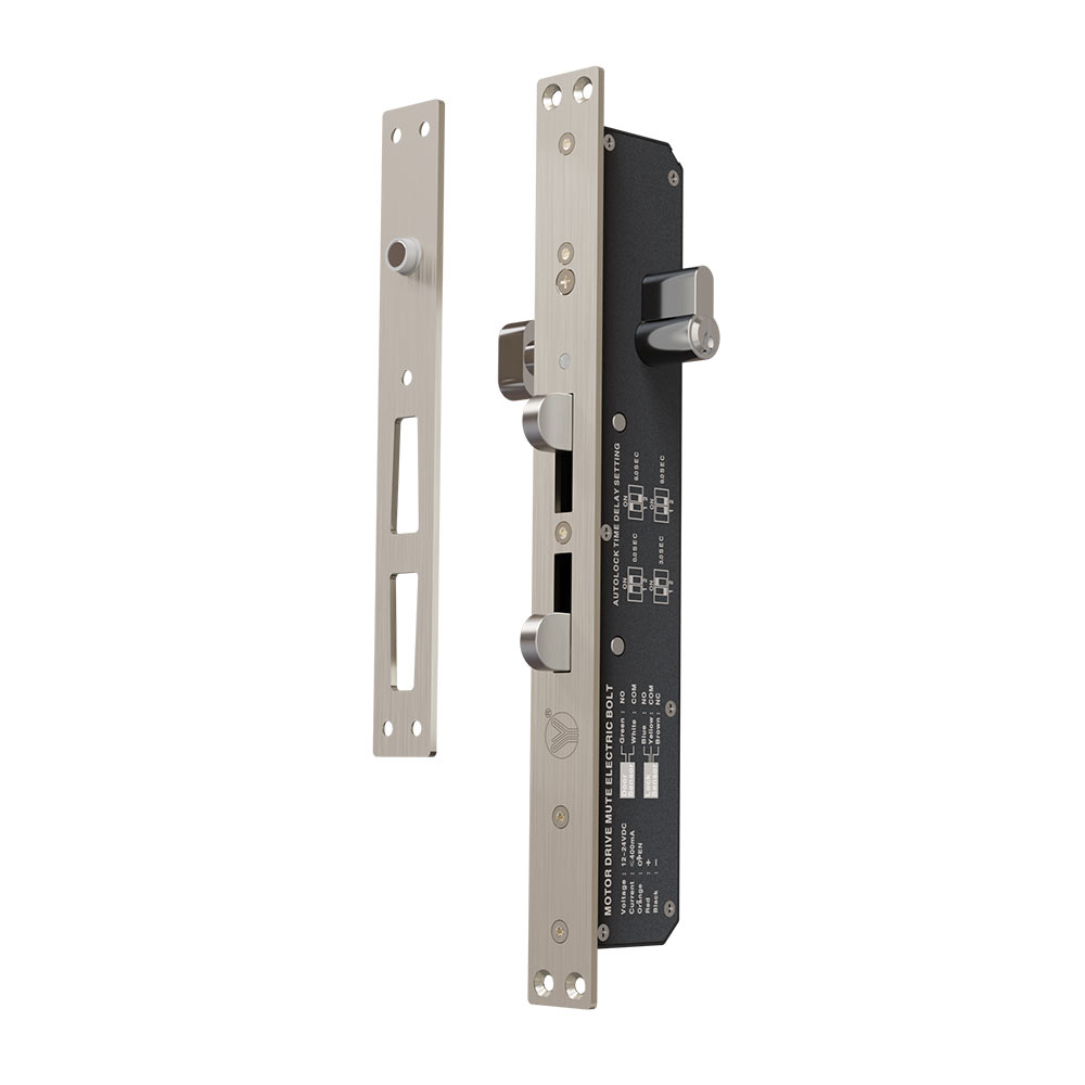 Motor driven mute electric bolt,the bolt is controlled by motor drive to realize lock and unlock. The driving force of the motor is very strong,the bolt can be pushed out by the powerful thrust of the motor to align the door when the door is deformed or misaligned. The parts are made of lightweight materials, work more smoothly, less resistance, can achieve mute when lock and unlock.The PCB is equipped with an electronic protection device to realize the precise control of locking and unlocking. In addition,compared with the traditional electric bolt which uses electromagnet to lock, which is low power consumption, energy saving and environmental protection.