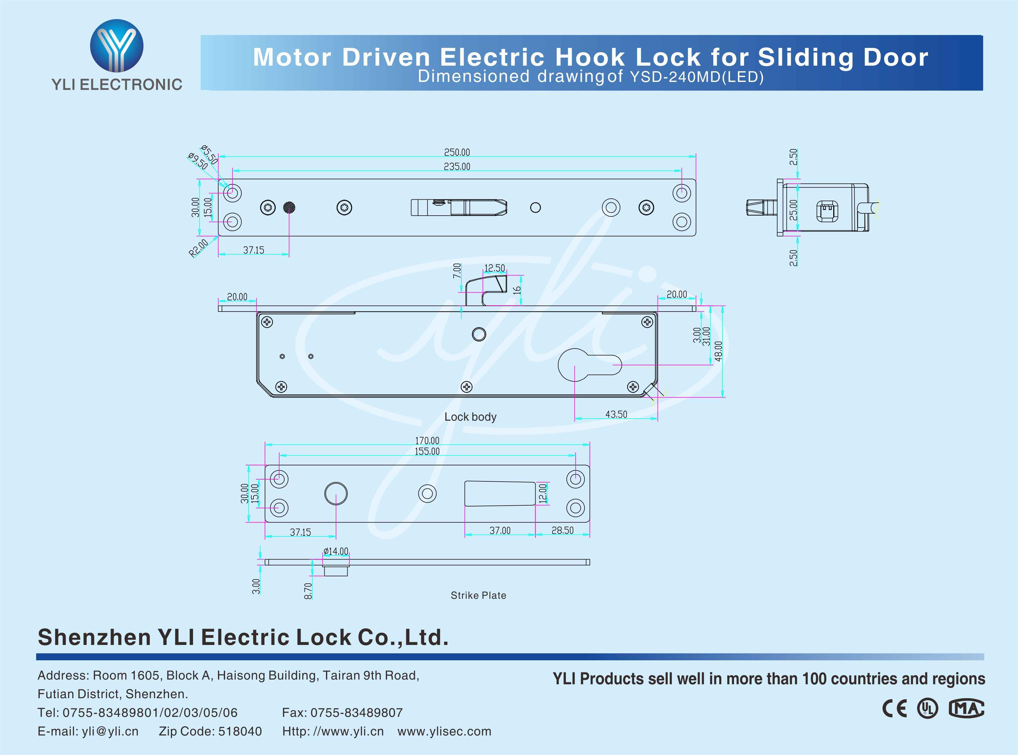 YLI Motor Driven Multi-functional Electric Hook Lock, specially designed for sliding door, equipped with European standard lock cylinder, it can achieve the dual purpose of electric control at ordinary times and manual operation in emergency. The bolt is made of solid steel, processed by CNC lathe, and can withstand 370kg push/pull force, special high security design of anti-prying function after locking, and all the linkage parts are made of metal structure, can be used normally from -40 degree to 60 degree. Professional durable solenoid valve, excellent performance, safe and durable, is the first choice for engineering.