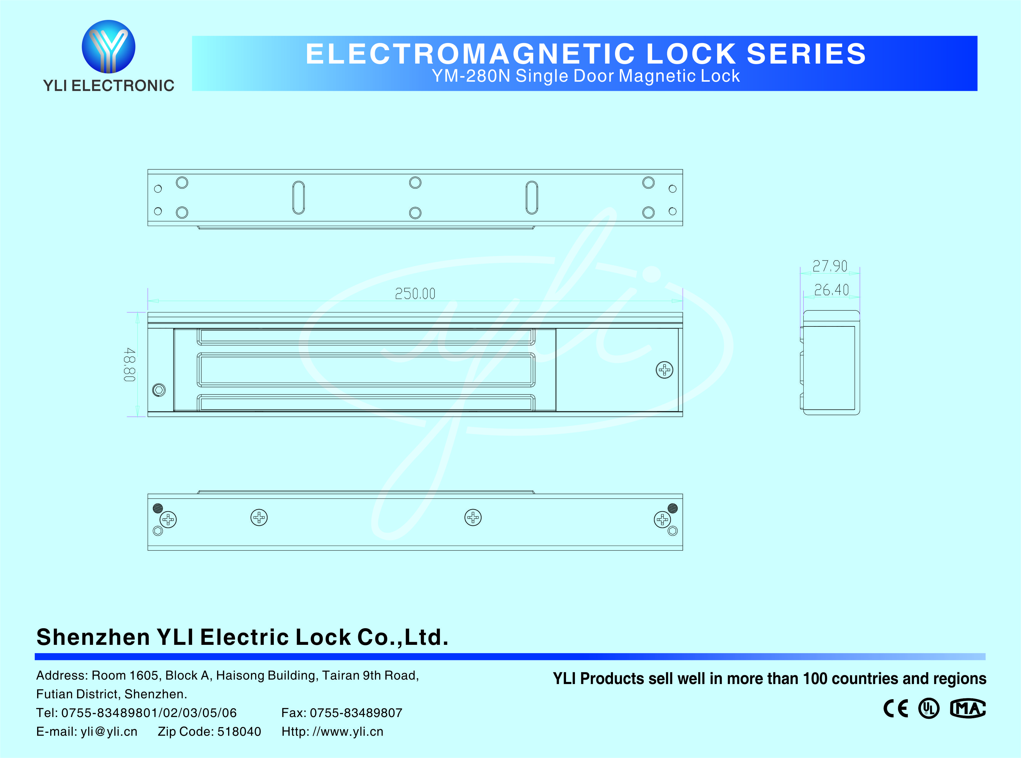 YM-280N Single door magnetic lock is designed for wooden door, metal door, glass door and fireproof door. YLl magnetic lock cores are produced with robotic laser welding technology ,providing 2 to 3 times stronger impact resistance and torsional resistance than conventional production processes. The surface is treated with the internationally leading electroplating process and the lock itself has passed the 240-hour salt spray test in the national laboratory, achieving excellent performance of anti-oxidation, anti-rust and anti-corrosion. Our company offers a complete range of brackets for different locks.