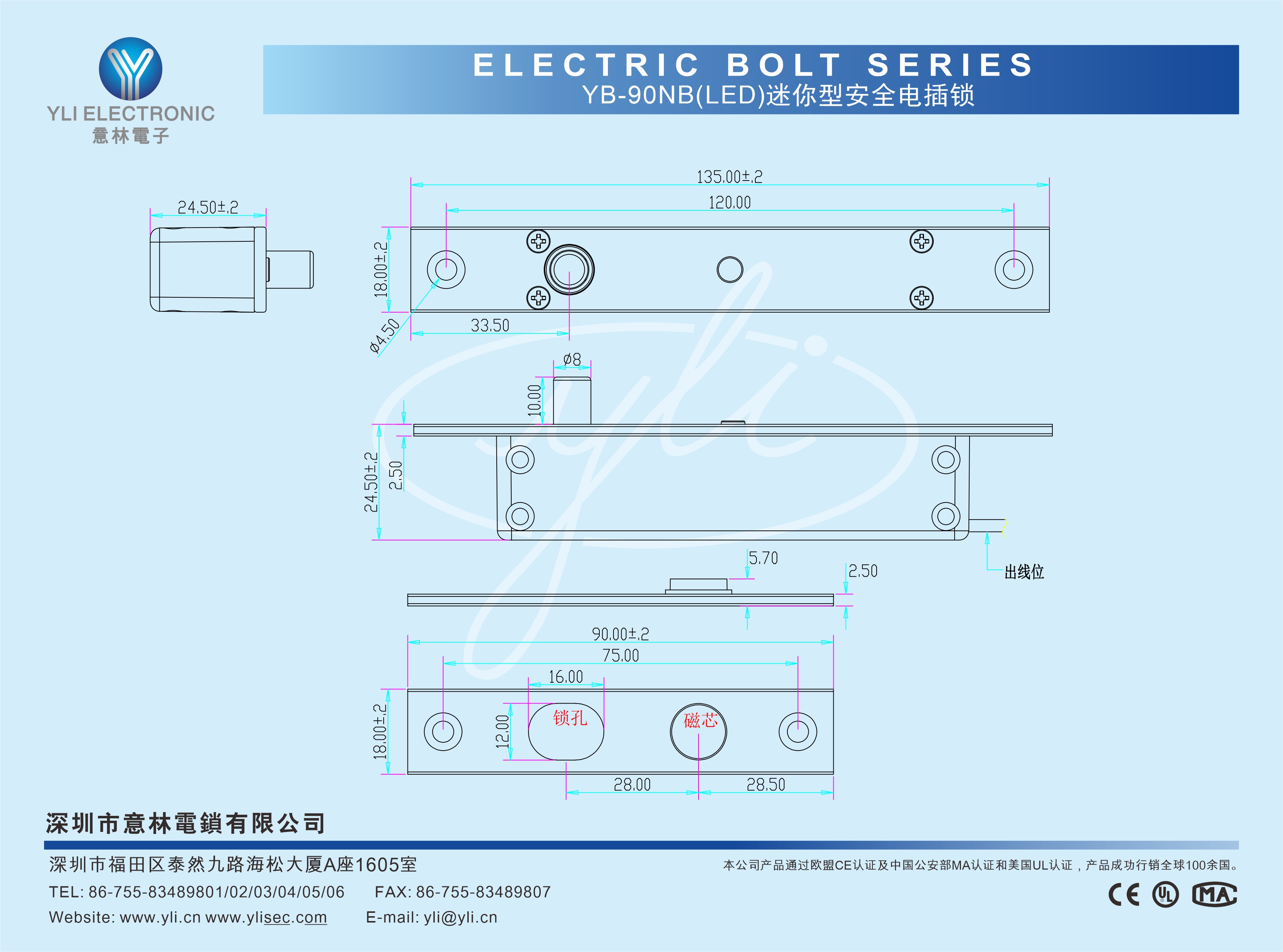 適用于雙向開門。電插鎖專為180度雙向開的門設計,向內開或向外開均可安裝。防入侵電路設計。鎖舌上鎖后,自動切斷干簧管偵察功能,避免人為截斷門閂板的磁鐵與鎖體干簧管的感應,使電鎖產生錯誤動作而開鎖。智能型邏輯電路設計。智能型邏輯電路設計,偵測鎖舌上鎖狀態是否正確。自動重新啟動上鎖功能可防止因門位不正無法上鎖。光電技術應用,減少機械故障。光電元件感應電磁閥驅動鎖舌動作,更耐用更穩定。不同于其它廠商使用機械式的微電開關元件,使用不穩定及使用壽命短等問題。低溫省電路設計。鎖舌插出后,瞬間低電流轉換。200mA的持續電流,低功耗 、低溫、環保并延長電鎖使用壽命。超耐用型電磁閥設計。專業設計的耐用型電磁閥,使用壽命超過50萬次測試合格。(設計應用超過5-10年使用次數)自動上鎖延時功能。自行設定0/3秒上鎖延時時間,以免門扇剛關閉時處于擺動狀態,經過設定延時時間后,門扇完全靜止后,電插鎖才啟動上鎖動作。全金屬結構鎖體。特別加強型金屬結構,內部連動部件也全部使用金屬加強處理設計,確保產品更耐用,更堅固,在高溫或嚴寒等惡劣環境應用而不會因材質不一致而影響正常使用。304不銹鋼實芯鎖舌。整體式不銹鋼實心材質,經CNC車床精加工而成,靜態強度測試約600kg,不同于市面上空心管加工后用膠塞的空心鎖舌部件,受力撞擊及嚴寒環境鎖舌脫落等問題。