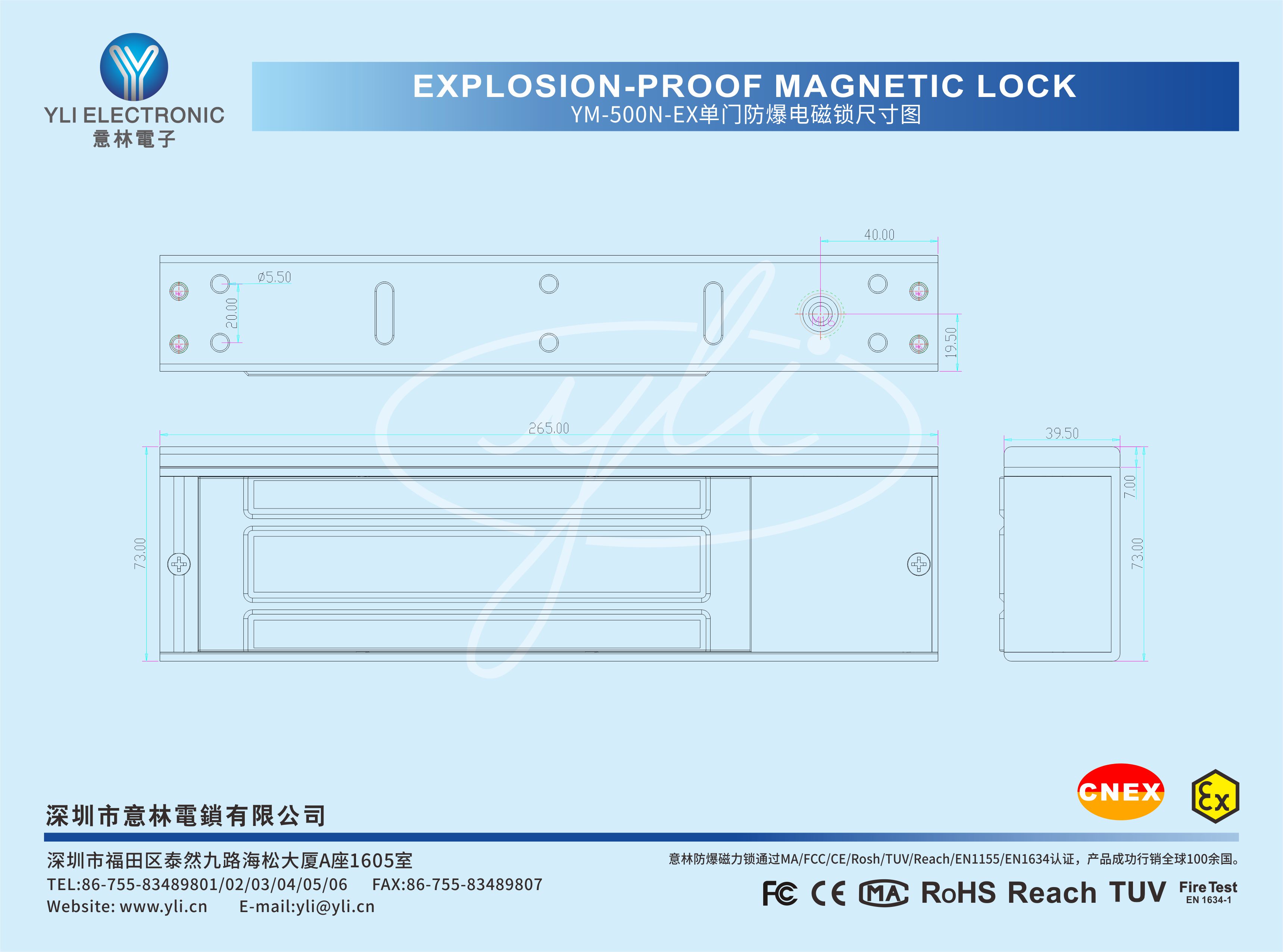 YM-500N-EX 重型單門防爆電磁鎖(磁力鎖)附信號輸出,是一款應用在爆炸性氣體及粉塵環境中的高安全電磁鎖。本產品嚴格按照國家標準GB/T3836.1-2021【爆炸性環境第1部分設備通用要求]及GB/T3836.9-2021【爆炸性環境第9部分由澆封型“m”保護的設備】中的有關規定設計和生產,產品經國家指定的防爆產品檢測機構檢驗合格,并持有防爆合格證備查。全系列產品通過國家實驗室240小時鹽霧測試,內置溫度保險裝置,內設有一組鎖狀態信號(NO,COM)接點輸出,為門禁系統反饋門狀態信息,品質及工藝均領先業界,廣泛應用于石油石化、港口碼頭、鉆井平臺、醫藥化工、航天軍工、糧食加工,機械制造等場所。在使用本產品前請認真閱讀說明書內容,以保證你能正確使用,避免因不當使用和操作引起或可能產生安全事故,敬請留意。