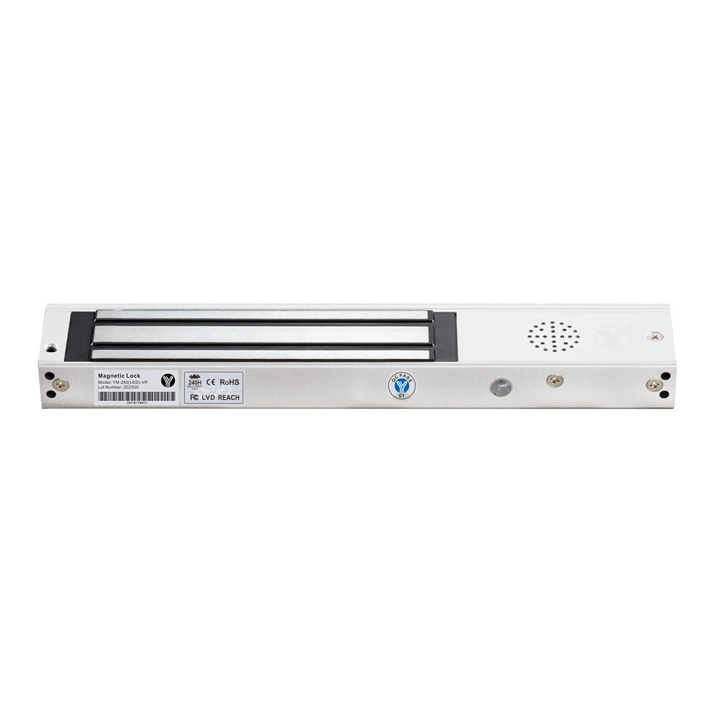 YM-280(LED)-VP單門磁力鎖帶語音提示功能是針對木門、金屬門、玻璃門、防火門等設計的。開鎖后,會發出“門已開”語音提示,有3-12秒延時可調功能,另設有一組鎖狀態信號(NO/NC/COM)輸出接點,為門禁系統實時反饋信息,鎖體設有LED燈顯示,綠燈開鎖,紅燈上鎖。意林磁力鎖加大電磁吸力設計,吸力超強,鎖芯特殊加強焊接工藝,抗撞擊力及抗扭力比常規生產工藝強2-3倍,更堅固耐用。表面處理采用國際領先的電鍍工藝,通過國家實驗室240小時鹽霧測試,達到防氧化、防銹、防腐性能。適用于日常辦公場所或沿海鹽霧,潮濕(如:地鐵,機場,核電站,跨海大橋,港口碼頭,醫療機構,沿海城市建筑)等場景使用。本公司產品規格及配套齊全,內開式門或無框玻璃門、窄框門等均有安裝支架配套,有效滿足現代智能建筑的各種場景需求。